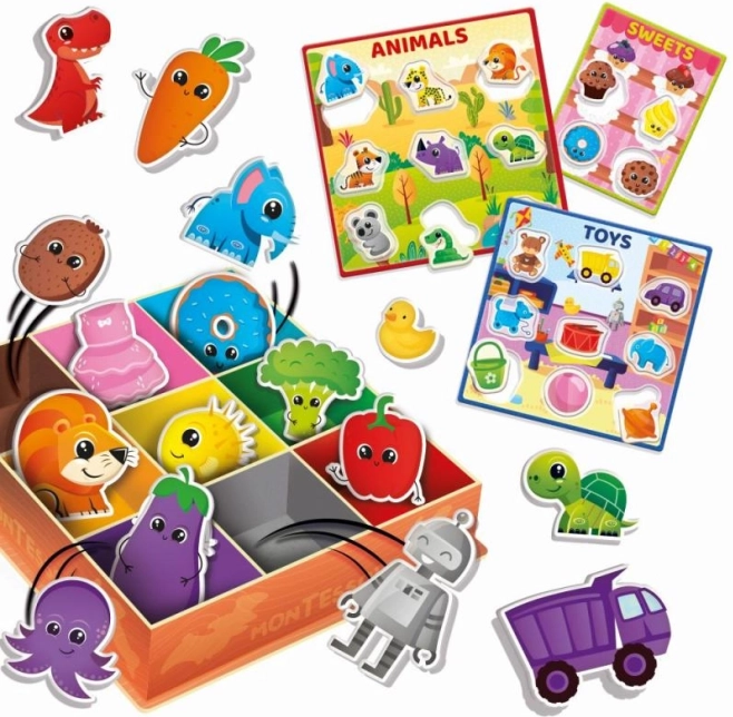 Ši spalvota rūšiavimo dėžutė paremta MONTESSORI metodo principais ir skatina vaikus savarankiškai atrasti bei rūšiuoti. Žaisdami vaikai deda ir priskiria elementus pagal spalvas, taip natūraliai lavina jutiminį suvokimą, treniruojasi susikaupti ir patiria džiaugsmą kiekvieną kartą teisingai priskyrę.