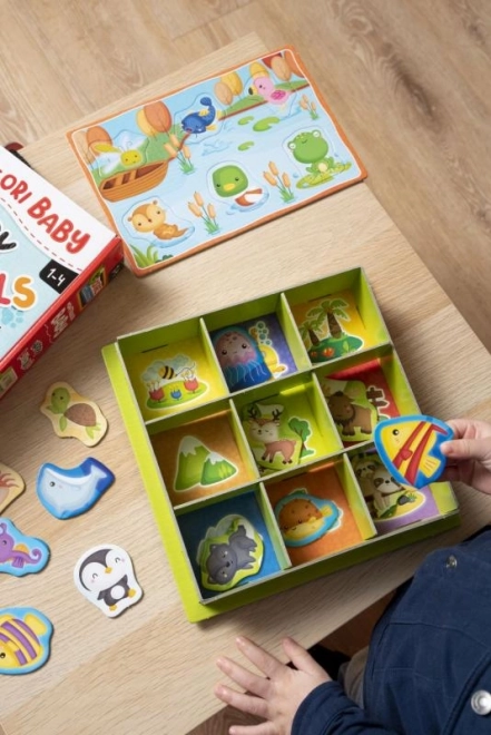 Montessori dėžutė „Gyvūnėliai“ supažindina vaikus su spalvingu gamtos pasauliu per paprastą rūšiavimą ir gretinimą. Vaikai mokosi atskirti gyvūnus ir jų natūralią aplinką, lavina loginį mąstymą ir akių–rankų koordinaciją. Dėl spalvingo ir intuityvaus pateikimo žaidimą greitai perpranta net patys mažiausi.