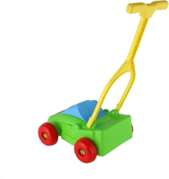 Plastikinė vejapjovė yra tvirta ir kartu lengva, todėl vaikai ją nesunkiai stumia tiek namuose, tiek lauke.