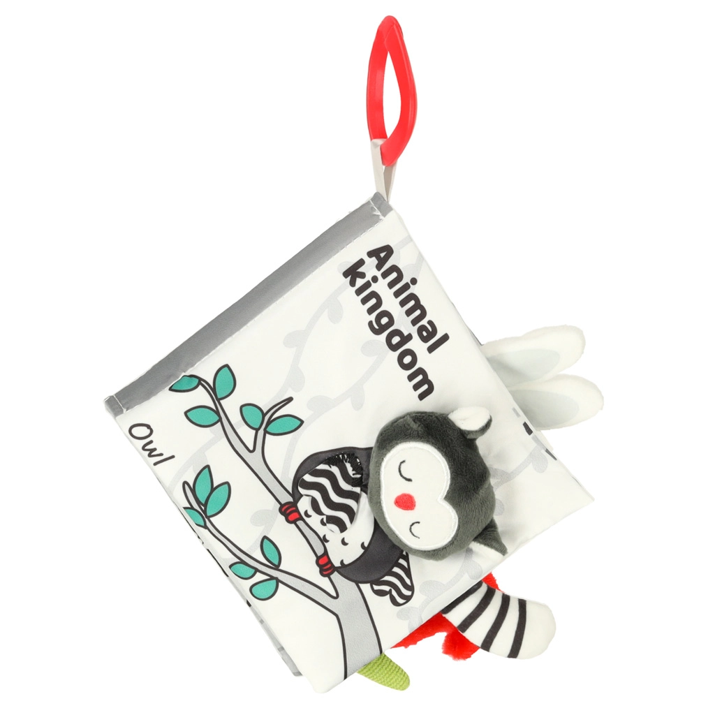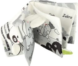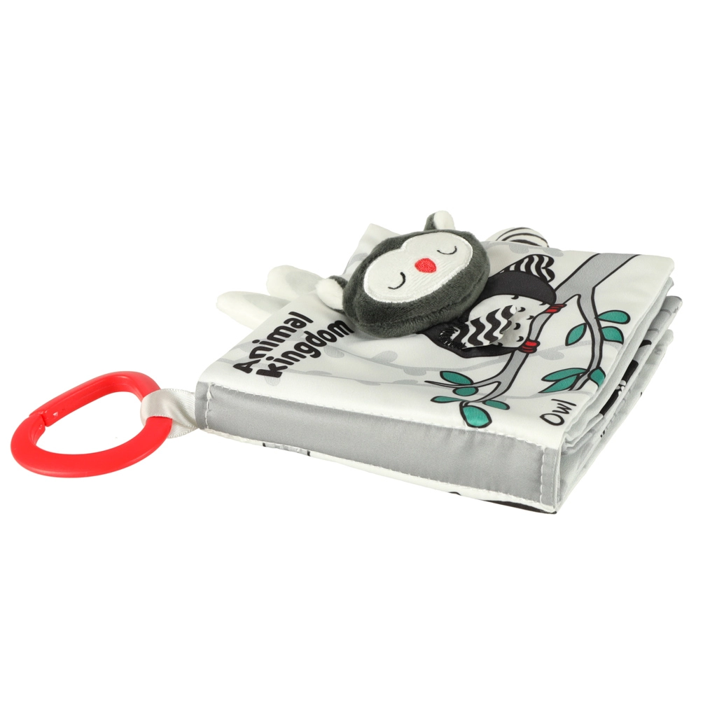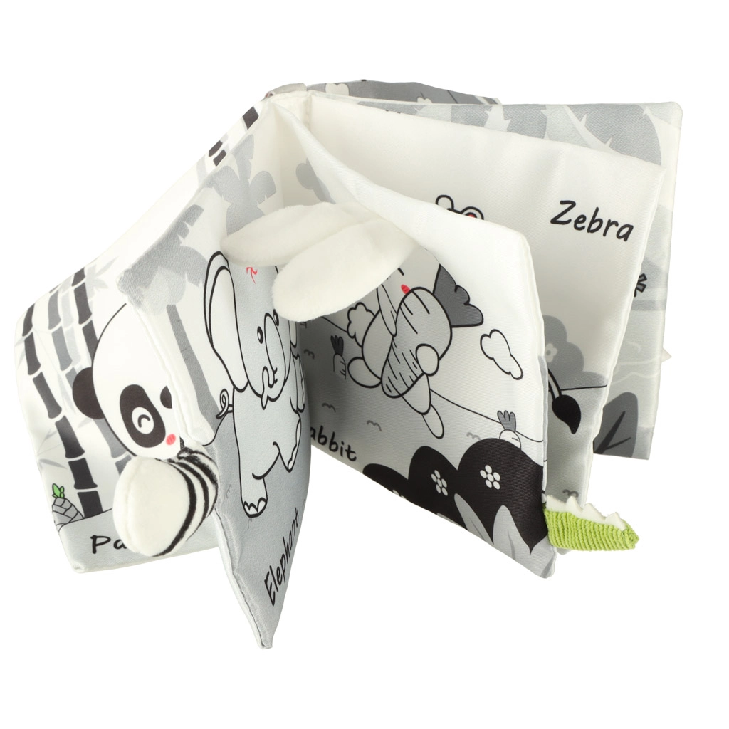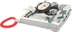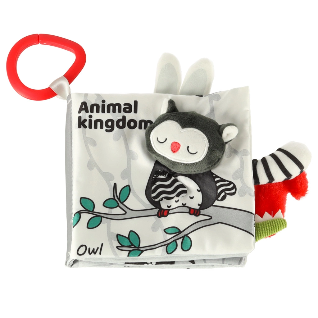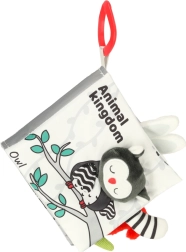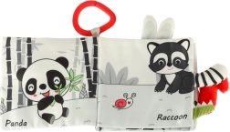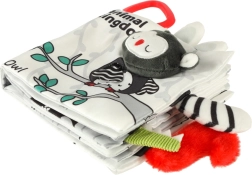 Su šia minkšta kontrastinių spalvų knygele jūsų mažylis leisis į gyvūnėlių pasaulio atradimus – nuo pelėdos iki beždžionėlės ir pandos, o taip pat meškėno, dramblio, krokodilo ar zebro. Juodai balti ir raudoni elementai skatina ankstyvąją vizualinę stimuliaciją, o įvairios tekstūros ir interaktyvūs elementai lavina smulkiąją motoriką ir akių–rankenų koordinaciją. Kiekviename puslapyje yra angliški gyvūnų pavadinimai, kas natūraliai prisideda prie pirmųjų žodyno žingsnių.