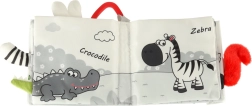 Pirmoji jūsų kūdikio knygelė: minkšta sensorinė knygelė su kontrastiniais gyvūnų vaizdais ir praktišku segtuku vežimėliui. Joje yra šiugždančių puslapių, įsiūtas barškučis, cyptukas ir įvairių tekstūrų, skatinančių regą, klausą ir lytėjimą. Tinka nuo 6 mėnesių.