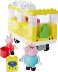 Leiskitės su Peppa ir jos tėčiu į savaitgalio nuotykį patogiame kemperyje. Vaikai gali atverti automobilį, susidėti sėdėjimo zoną, gaminti virtuvėlėje, paruošti arbatą ir pastatyti grilį. Ryškios spalvos, didelės detalės ir mieli priedai kviečia kurti begalines istorijas.