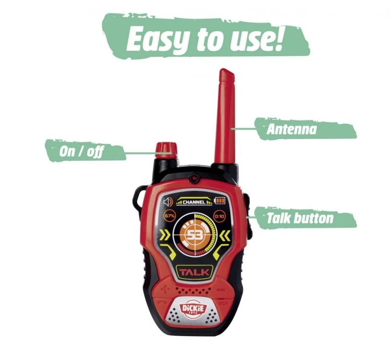 Leiskite savo vaikams patirti bendravimo džiaugsmą su Dickie Toys Walkie Talkie Fun racijomis. Šios racijos specialiai sukurtos vaikams ir siūlo daugybę funkcijų, kurios skatina jų vaizduotę ir pramogas: