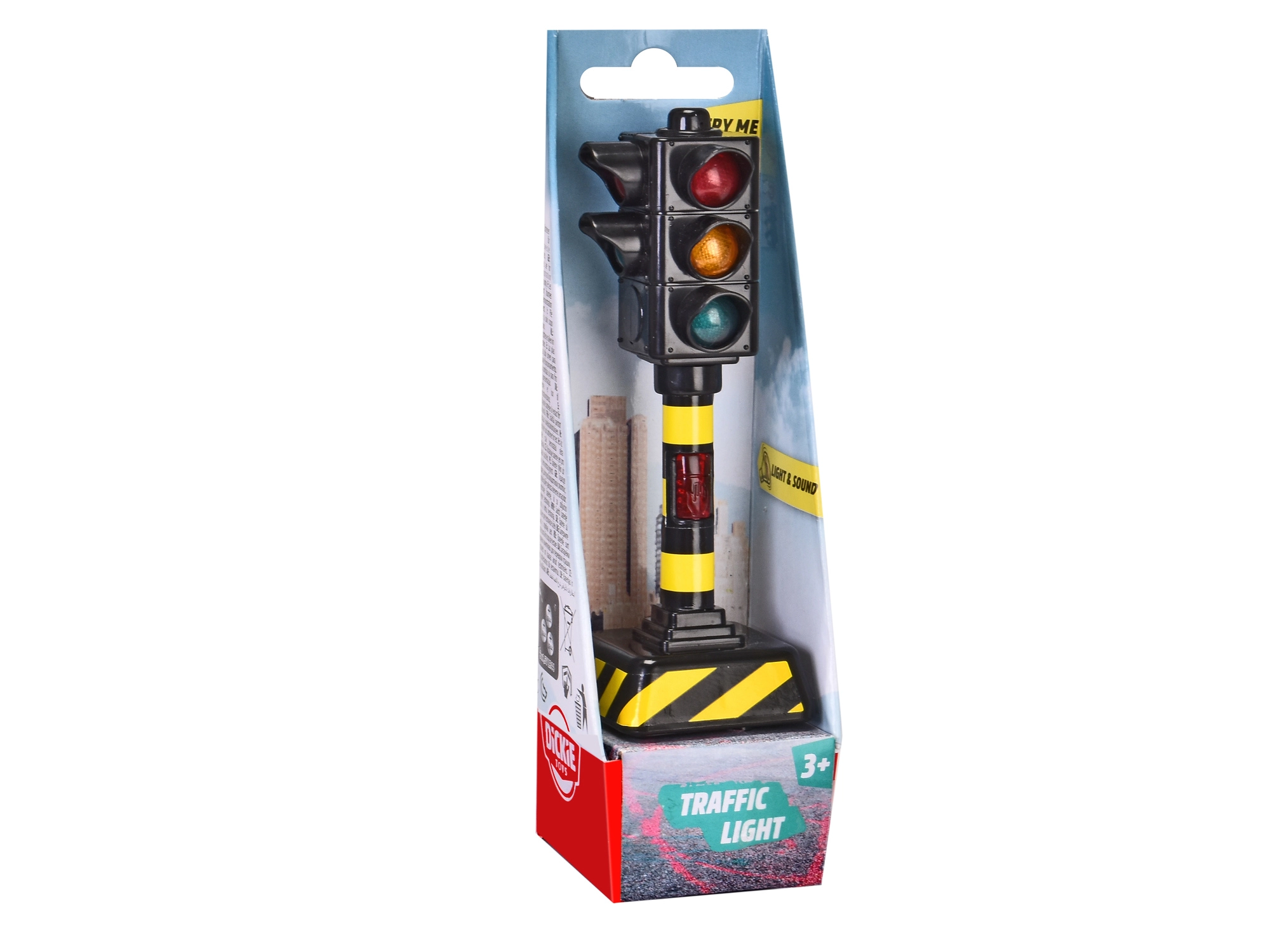 Realistiškas vaikų šviesoforas su automatiniu šviesų keitimu ir garso efektu. Kompaktiškas 12 cm aukštis tinka daugumai vaikų automobiliukų ir žaidimų rinkinių.