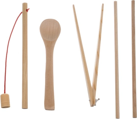 Pincetas, lazdelės ir šaukštelis padeda treniruoti griebimą, tikslumą ir akių–rankų koordinaciją. Puikiai tinka pasiruošti rašymui ir kasdieniams įgūdžiams.