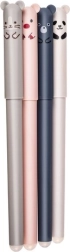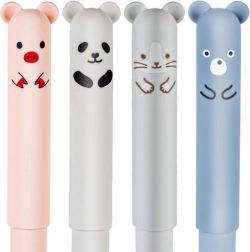 Rinkinyje yra 4 stilingi ištrinami rašikliai pilkos, baltos, rožinės ir mėlynos spalvos su žaismingais gyvūnėlių motyvais (paršelis, panda, pelė, meškiukas). Dėl termojautraus rašalo lengvai ištaisysite smulkias klaidas – tereikia panaudoti gale esantį trintuką ir rašyti iš naujo, be negražių braukymų.