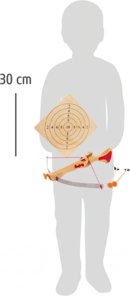 Linksmas ir saugus medinis arbaletas vaikams nuo 5 metų lavina taiklumą ir koordinaciją. Šaudo medinėmis strėlėmis su siurbtukais, kurios dėl kokybiškų guminių antgalių gerai prikimba prie lygių paviršių. Rinkinyje yra taikinys ir 2 strėlės, todėl pramoga gali prasidėti iš karto.