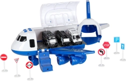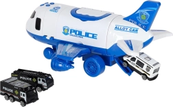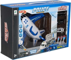 Lėktuvo viduje sutalpinsite 3 policinius automobilius ir 7 ženklų komplektą, kurie padės vaikams suprasti eismo taisykles ir specialiųjų tarnybų darbą. Lėktuvas turi patogią rankeną nešiojimui, nuimamus sparnus vietos taupymui ir lengvai riedančius ratukus dinamiškiems nusileidimams.