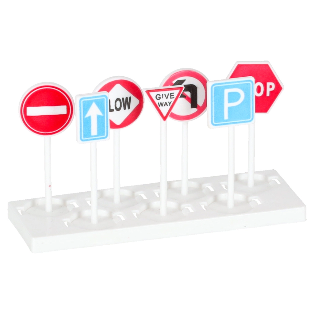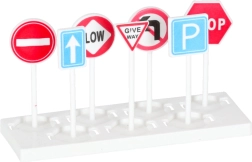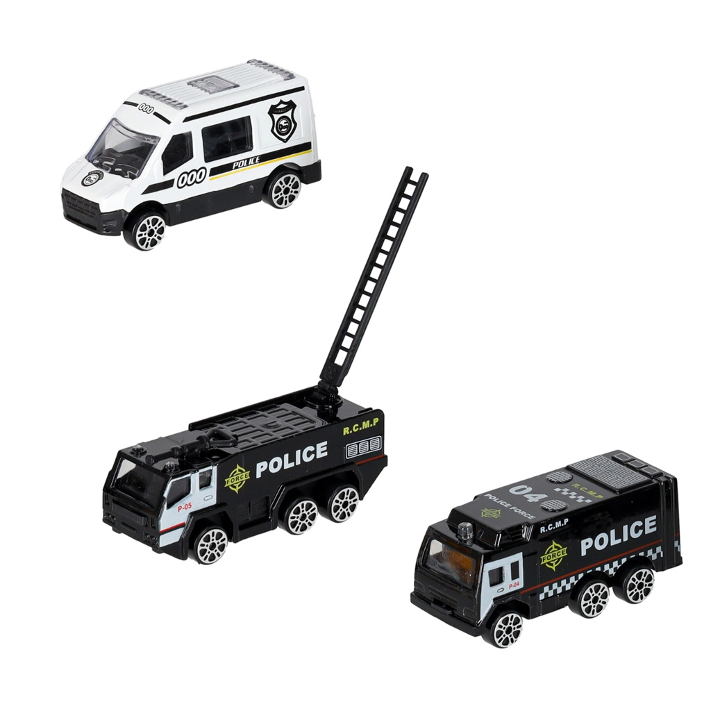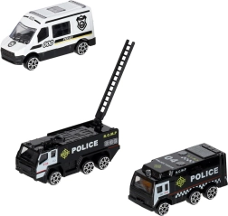 Komplekte yra 3 dalių policinių transporto priemonių rinkinys ir 7 kelio ženklai. Vaikai lavins kelių eismo taisyklių žinias ir komandinį darbą.