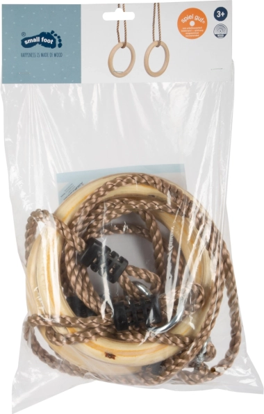 Mediniai gimnastikos žiedai small foot puikiai tinka vaikų mankštai, norint stiprinti fizinę būklę. Jie sukurti taip, kad dėl žiedų skersmens ir paprasto virvių ilgio reguliavimo būtų tinkami net mažesniems vaikams.
