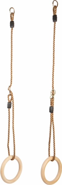 Gimnastikos žiedai turi lengvai reguliuojamus virves, kurios leidžia prireikus keisti jų ilgį.