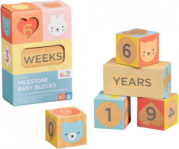 Išsaugokite prisiminimus apie kiekvieną etapą su Petit Collage etapų kubeliais. Dėl skirtingų atspaudų ant kiekvienos pusės lengvai sudėliosite datą, amžių ar žinutę ir sukursite gražias, dalijimuisi tinkamas nuotraukas. Natūralus FSC buko medienos dizainas yra draugiškas aplinkai ir saugus vaikams nuo gimimo.