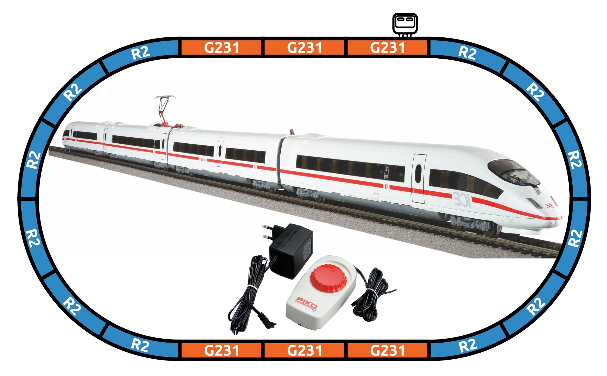 Šis kokybiškas pradžios rinkinys puikiai tinka tiek pradedantiesiems, tiek pažengusiems modeliuotojams. Jame yra keturių dalių elektrinis sąstatas ICE 3 Vokietijos vežėjo DB AG, ovalus bėgių kelias su pabėgiais ir bazinis analoginis valdiklis su maitinimo šaltiniu. Dėl NEM 652 sąsajos lokomotyvą lengva papildyti skaitmeniniu dekoderiu ir garso moduliu.
