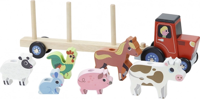 Linksmas medinis VILAC traktorius su nuimama priekaba ir šešiais mielais gyvūnėliais (zuikis, avis, gaidys, arklys, kiaulė, karvė) – idealus žaislas vaikams nuo 2 metų. Dėka gyvūnėlių užmovimo ir važiavimo su priekaba vaikai lavina akių–rankų koordinaciją, kantrybę ir vaizduotę.