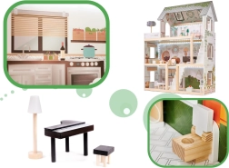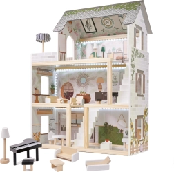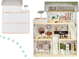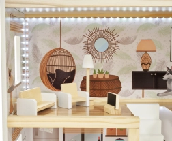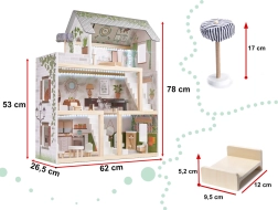 LULILO FLORO namelis švelnaus boho stiliaus derina natūralią išvaizdą, elegantiškas detales ir funkcinius sprendimus mažiesiems pasakotojams. Vaikai pamils keturis įrengtus kambarius – virtuvę, vonios kambarį, svetainę ir miegamąjį – bei erdvią terasą su gultu ir skėčiu nuo saulės. Integruotas LED apšvietimas pabrėžia žaidimo atmosferą dieną ir vakare.