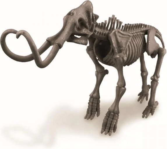 Iškasus detales, vaikai surenka detalų plastikinį mamuto modelį – puikų mokomąjį ir dekoratyvinį eksponatą.