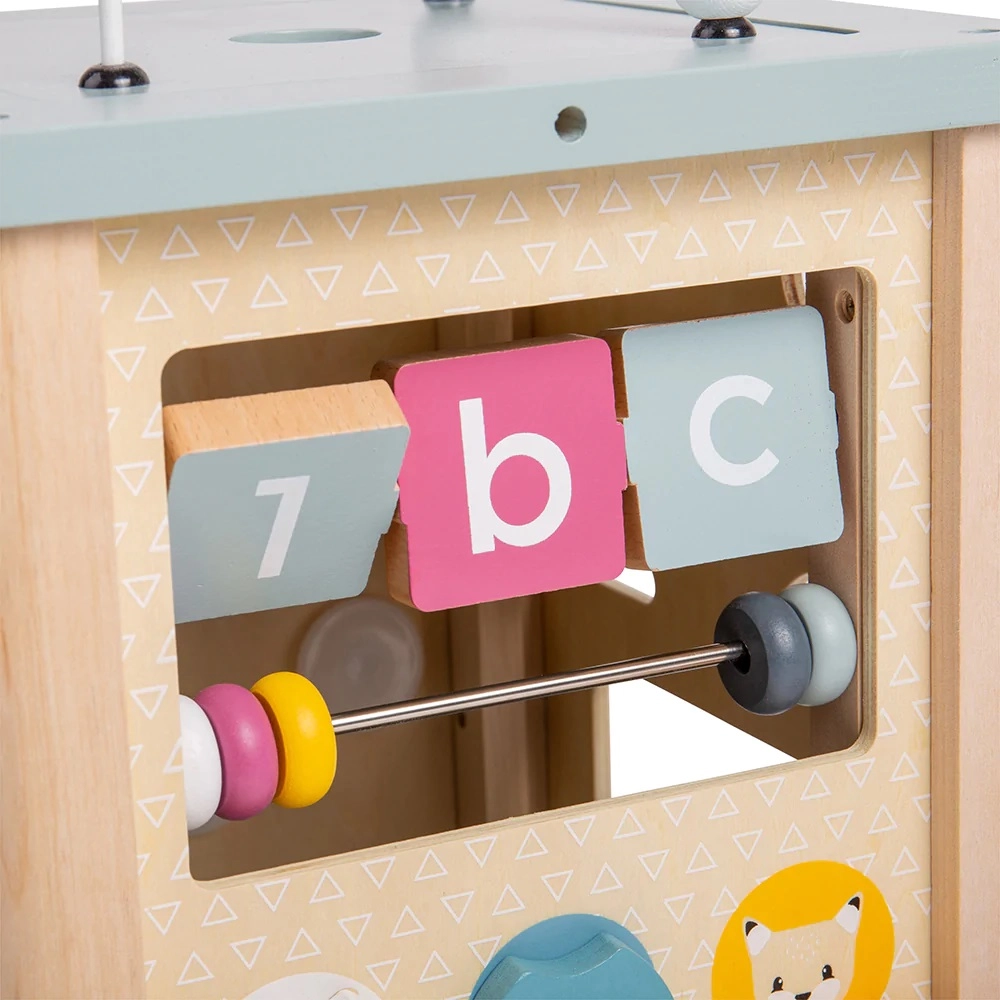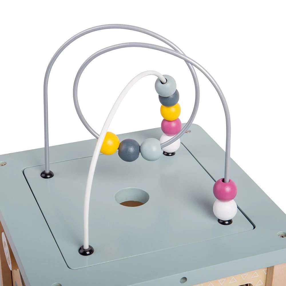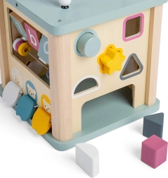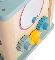 Atraskite universalų motorinį kubą iš aukštos kokybės 100% FSC medienos, kuris ilgam sudomins vaikus. Kiekvienoje pusėje laukia vis kita veikla – formelių rūšiuoklis, rutuliukų trasa, dantyti krumpliaračiai ir daugiau. Natūralios medienos ir švelnių pastelinių spalvų derinys tinka tiek berniukams, tiek mergaitėms. Žaislas skatina motorikos, komunikacijos ir skaičių atpažinimo raidą ir yra saugus vaikams dėl ekologiškų, FSC sertifikuotų medžiagų.