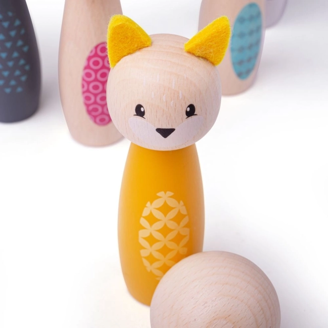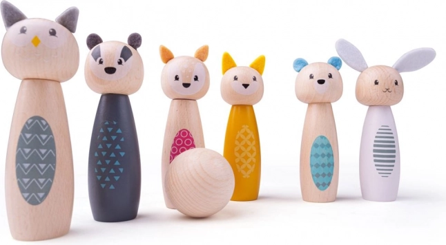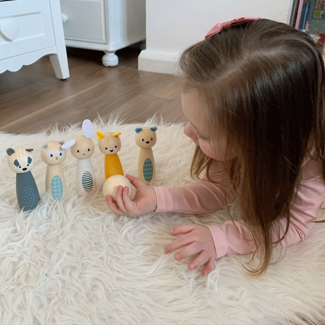 Pradžiuginkite vaikus stilingu kėglių rinkiniu su mielais gyvūnėliais – pelėda, barsuku, elniu, kate, meška ir triušiu. Ryškiaspalvės figūrėlės iš kokybiškos FSC sertifikuotos medienos yra lygios, malonios liesti ir atsparios kasdieniam žaidimui. Rinkinys tinka žaisti namuose ant kilimo ar ant lygios grindų dangos.