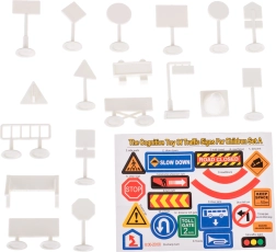 Į pakuotę įeina įvairūs kelio ženklai ir lipdukai, leidžiantys susikurti savo miestą ir žaismingai mokytis pagrindinių eismo taisyklių. Vaikas galės džiaugtis naujų istorijų ir situacijų atradimu spalvingoje žaidimų erdvėje.