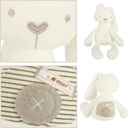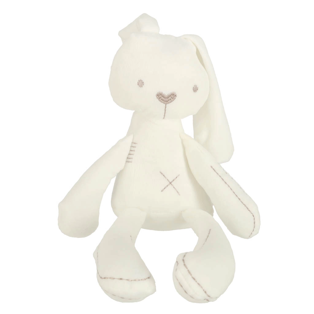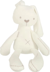 Švelniai siuvinėtos detalės ir neutrali spalva daro triušį universaliai patrauklų.