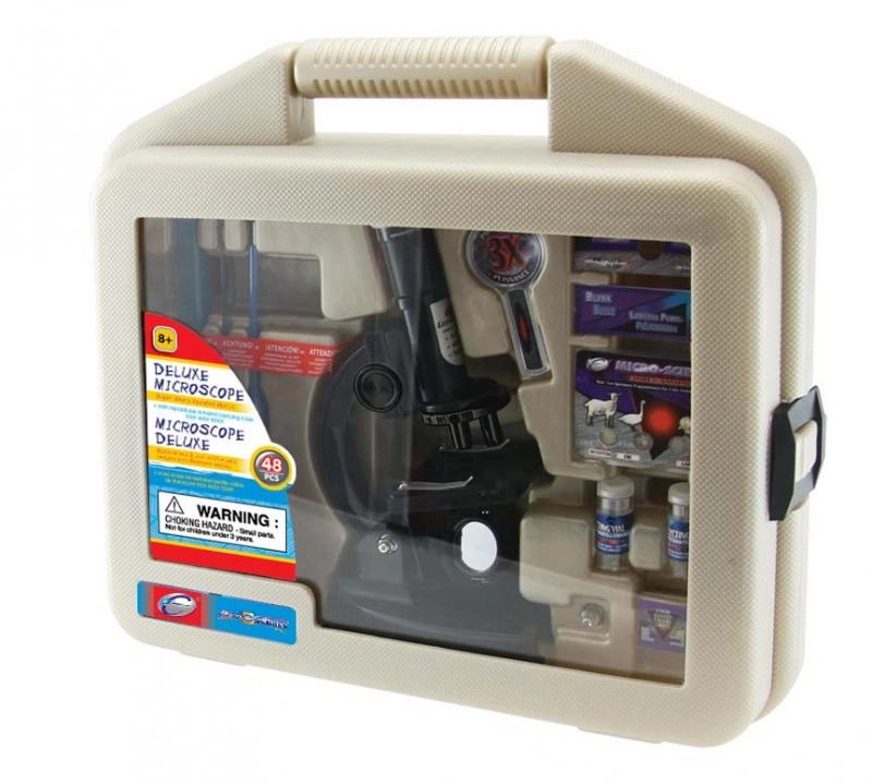 Deluxe rinkinys tvirtame lagamine apima mikroskopą ir būtinus priedus, tad galite pradėti eksperimentuoti iškart po išpakavimo.