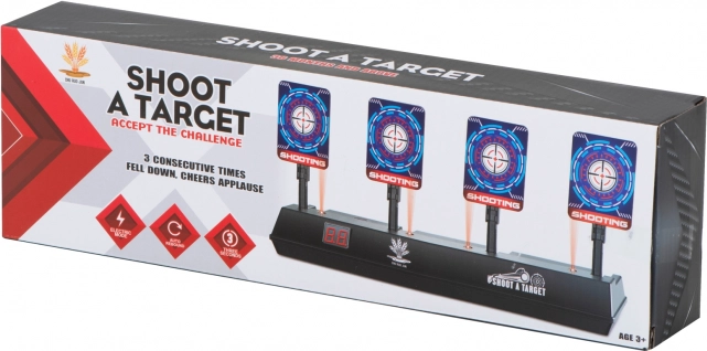 Elektroninis taikinys – puikus pasirinkimas taiklumo treniruotėms ir varžybiniam smagumui namuose. Keturi atskiri taikiniai leidžia įvairius žaidimo režimus – nuo greičio dvikovų iki taupios šaudymo taktikos su kuo mažiau strėlyčių. Po kiekvieno pataikymo taikinys nusilenkia, o pataikius į visus keturis, gaunate 1 tašką ir taikiniai automatiškai grįžta į pradinę padėtį.