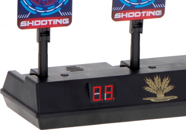 LED ekranas aiškiai skaičiuoja taškus, o pataikius į visus keturis taikinius, jie pakyla patys – žaidimas sklandžiai tęsiasi be rankinio nustatymo.