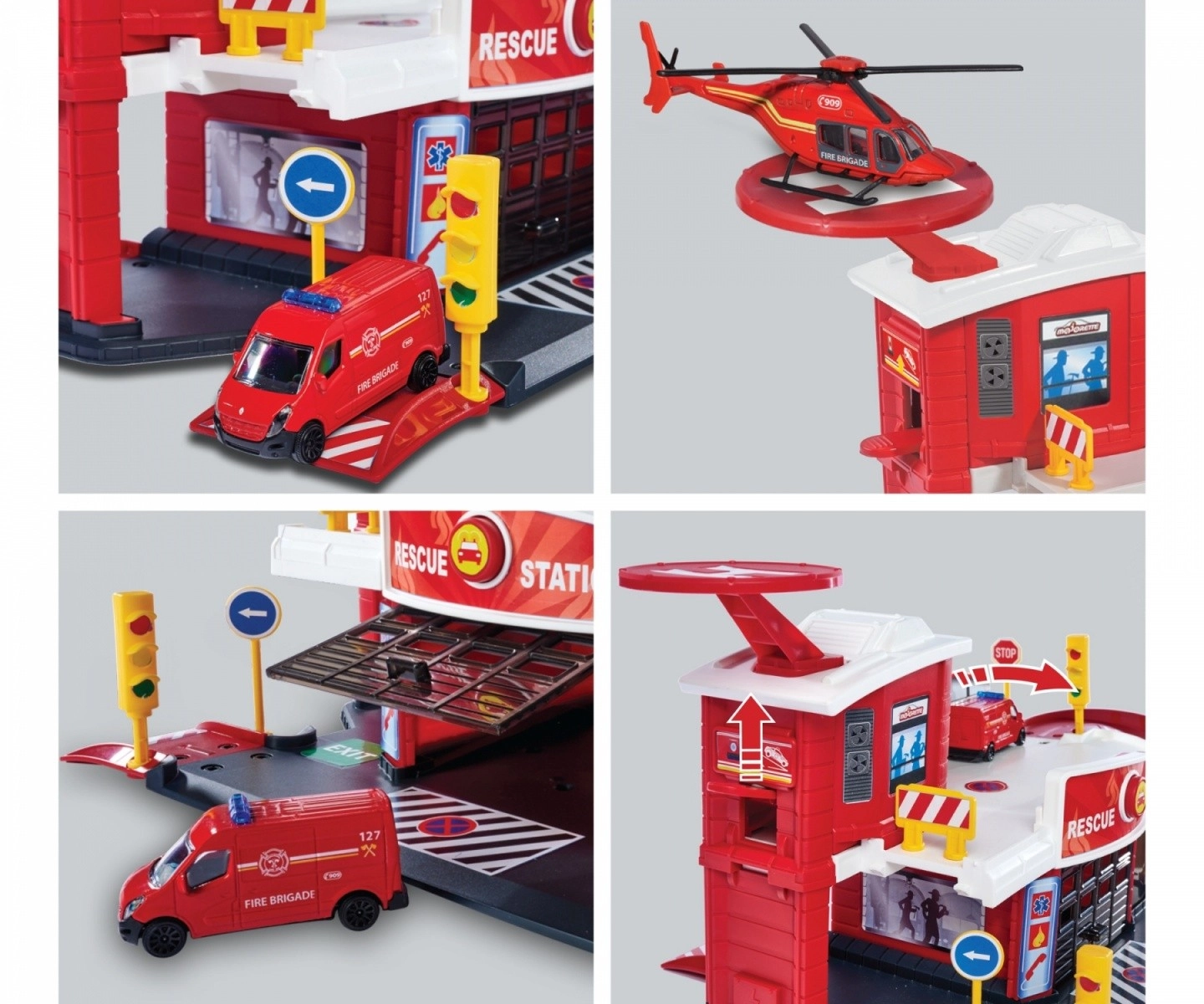 Dėl specialios sraigtasparnių aikštelės ir rampos vaikai gali imituoti tikras gelbėjimo operacijas ir pradėti misiją iš antro aukšto.