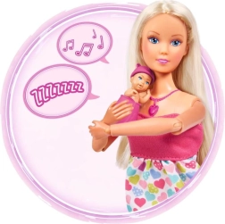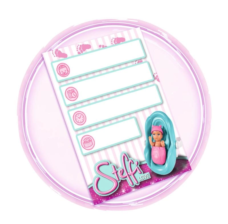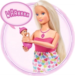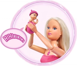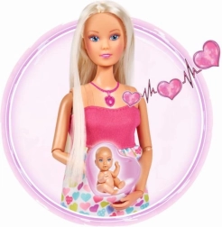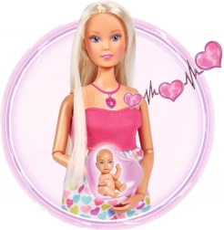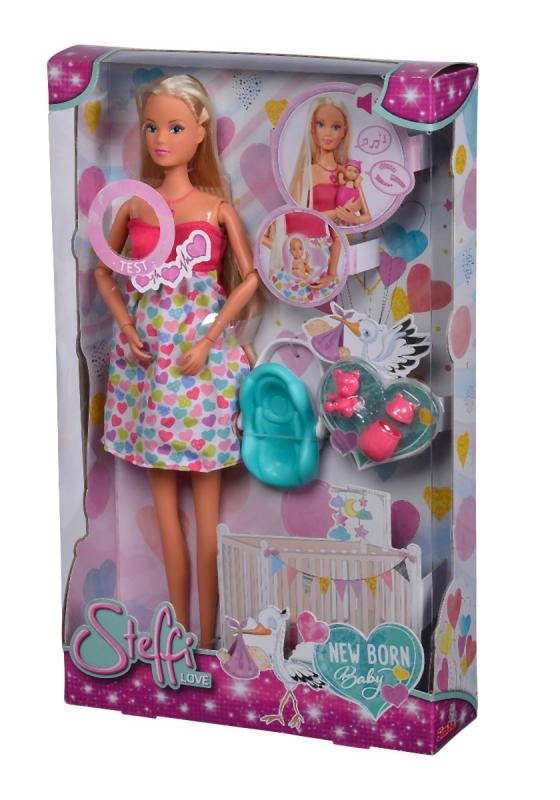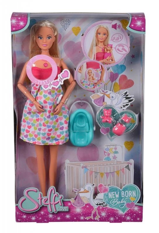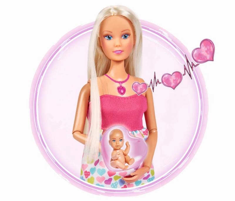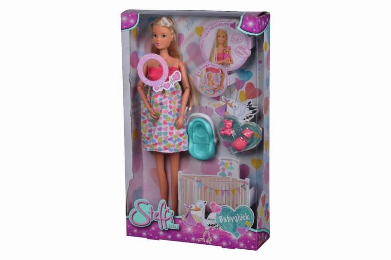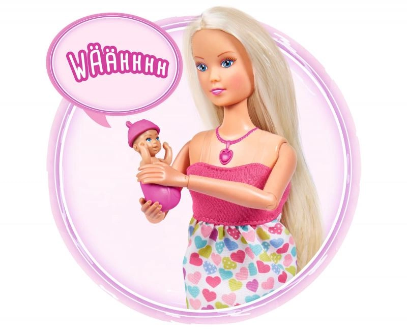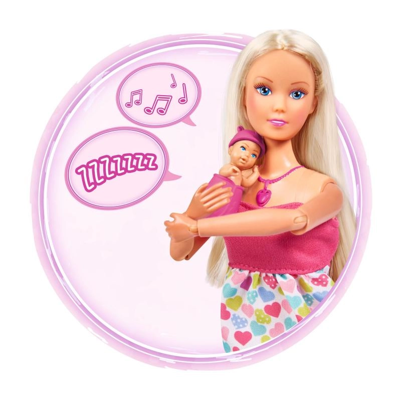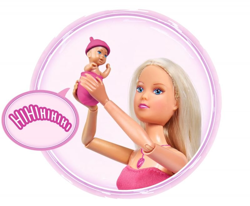 Atraskite globojamųjų žaidimų magiją su lėle Steffi Love, kuri yra nėščia ir siūlo realistinius garso efektus. Paspaudus širdelės formos vėrinį išgirsite kūdikio širdelės plakimą, naujagimio verksmą ir raminančią melodiją. Rinkinyje yra nešynė ir priežiūros priedai kūdikėliui bei try-me funkcija greitam išbandymui.