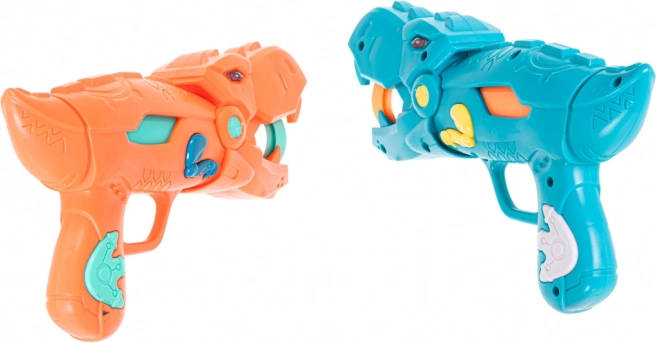 Du stilingi dinozaurų formos pistoletai leidžia saugiai ir efektyviai šaudyti minkštais putų kamuoliukais. Puikiai tinka žaidimams poroje ir varžyboms.