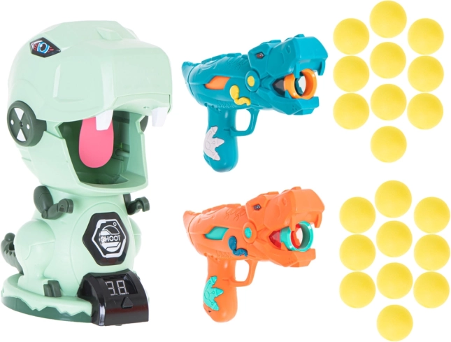 Dinozauro tematikos taikinys suteikia smagų būdą lavinti taiklumą ir šaudymą. Skaitmeninis ekranas fiksuoja jūsų rezultatą, suteikdamas žaidimui varžybinį elementą.