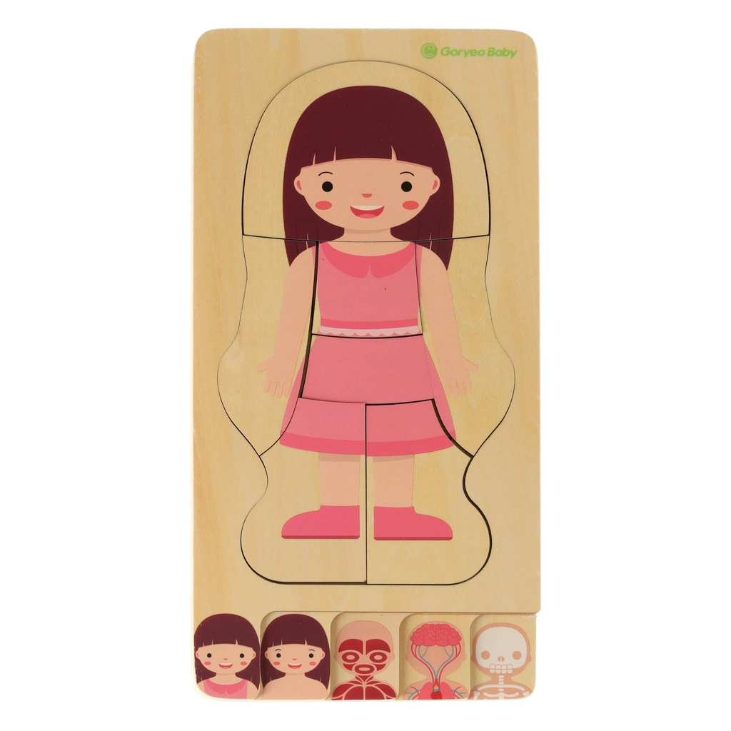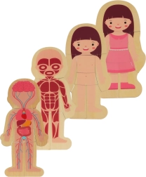 Medinė sluoksninė dėlionė žmogaus kūnas – mergaitė Montessori