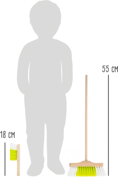 55 cm ilgio šepetys ir 18 cm šepetėlis puikiai telpa vaikams į rankas, todėl juos lengva valdyti, o tvarkymasis tampa natūralus ir smagus.