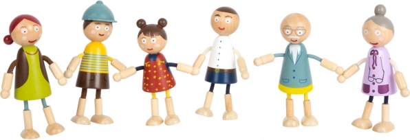 Su šiomis medinėmis figūrėlėmis iš Small Foot lengvai atgaivinsite savo lėlių namelius. Figūrėlės pagamintos iš kokybiškos medienos ir turi lanksčias dalis, todėl jas galima statyti į įvairias pozas. Rinkinyje yra mama, tėtis, močiutė, senelis, brolis ir sesuo – visos figūrėlės puikiai pritaikytos vaikų rankoms.