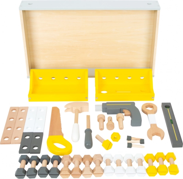 - Mediniai įrankiai: Aštuonių dalių rinkinys su plaktuku, pjūkleliu, atsuktuvu ir kt. suteikia tikros dirbtuvės įspūdį.