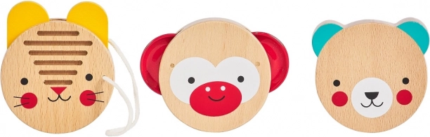 Trys paprasti mušamieji instrumentai su gyvūnėlių motyvais skatina natūralų ritmo pojūtį ir džiaugsmą muzikuojant nuo ankstyvo amžiaus.
