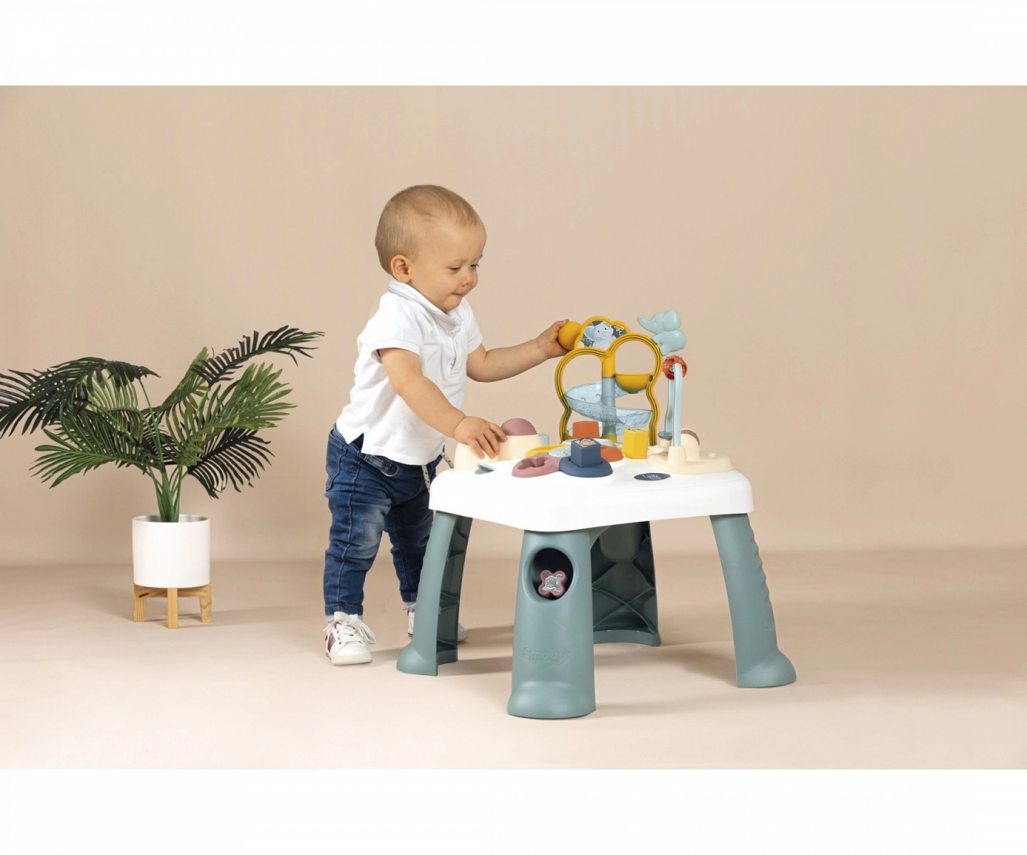 Interaktyvus staliukas Little Smoby sukurtas taip, kad per žaidimą lavintų vaikų motorinius įgūdžius. Tarp gausių funkcijų yra: