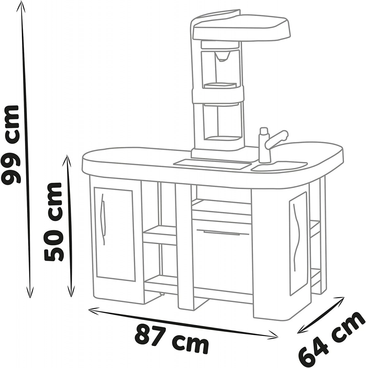 Ši erdvi, TEFAL prekės ženklo įkvėpta virtuvėlė siūlo viską autentiškam žaidimui: stalviršį, kriauklę su maišytuvu, kapsulinį kavos aparatą, gazuoto gėrimo gaminimo įrenginį, orkaitę, indaplovę, šaldytuvą ir atviras lentynėles. Elektroninė magiško puodo funkcija, įpylus vandens ir paspaudus mygtuką, sukuria tikrus burbuliukus, kurie sužavės kiekvieną mažą virėją.