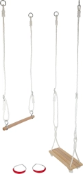 Dėl patvarių sintetinių virvių su reguliavimo sagtimi nustatysite optimalų aukštį kiekvienam vaikui. Dvi virvių komplektacijos leidžia vienu metu pakabinti ir naudoti dvi dalis. Paprasta pakabinimo sistema ir tvirtas medžio, metalo bei kokybiškų plastikų derinys užtikrina saugų ir stabilų naudojimą.