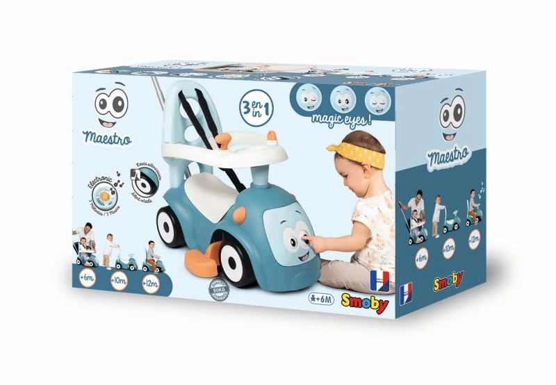 SMOBY Maestro siūlo pasirinkimą tarp paspirtuko su valdymo strypu, vaikštynės ir stumduko.