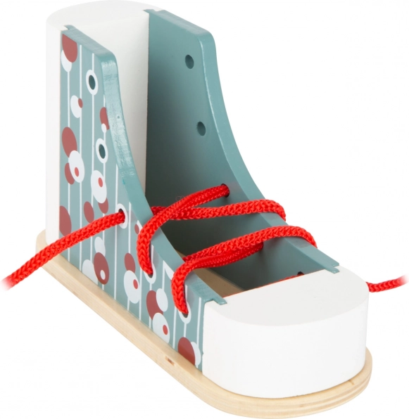 Šis medinis žaislas sukurtas taip, kad dėl realistiškos išvaizdos ir žaismingo dizaino vaikams būtų lengviau išmokti rišti raištelius.