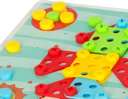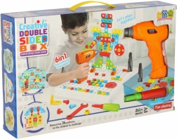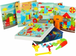 Konstruktorius su mozaikine lenta leidžia vaikams, naudojant žaislinį gręžtuvą, atsuktuvą ir raktą, sukti spalvotus varžtelius ir kurti įvairius paveikslus bei erdvinius modelius. Pažadinkite vaizduotę – vienintelė riba yra mažojo kūrėjo fantazija.