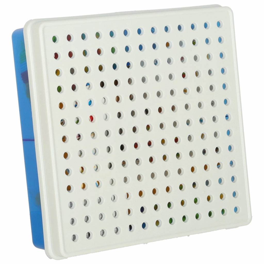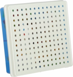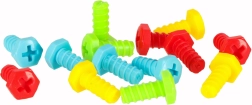 Didelis spalvotų varžtelių, plokštelių ir forminių detalių rinkinys žadina kūrybiškumą ir skatina savarankiškai kurti mozaikas bei modelius.