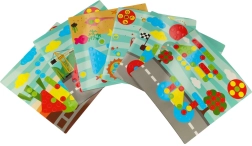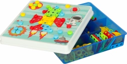 Perforuota lenta ir kortelės su paveikslėliais padeda lengvai sudėlioti raketas, gyvūnėlius ir savo dizainus – mokytis formų ir spalvų lengva kaip žaidžiant.