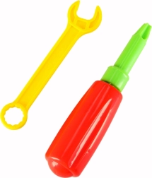 Vaikai gali sukti varžtus kaip tikri meistrai naudodami saugų baterijomis maitinamą gręžtuvą, atsuktuvą ir raktą – puiku motorikai lavinti.