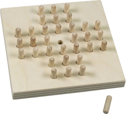 Klasikinis medinis soliteris iš Detoa – tai laikui nepavaldi loginė vieno žaidėjo užduotis, puikiai lavinanti loginį mąstymą, kantrybę ir susikaupimą. Tikslas – šokinėti per kaištelius taip, kad lentoje liktų tik vienas. Pagaminta Čekijoje iš kokybiškos medienos.
