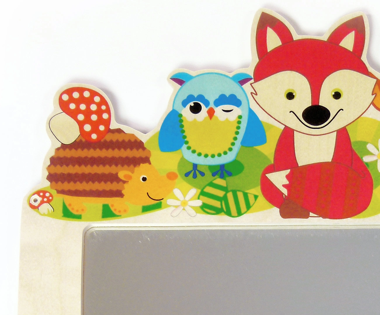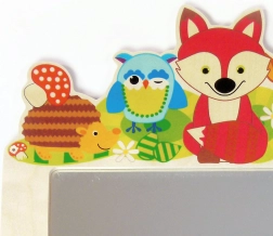 Stilinga vaikiška kabykla su veidrodžiu ir miško gyvūnų motyvu papuoš kambarį ar prieškambarį. Joje yra penki praktiški kabliukai striukėms ir aksesuarams bei saugus veidrodis iš nedužaus plexiglas. Pagaminta iš atsakingai išgautos medienos ir padengta ekologiškais dažais.