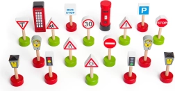 BIGJIGS RAIL medinių kelio ženklų rinkinys – idealus priedas prie traukinių trasų ir kitų medinių konstruktorių. Aiškiai iliustruoti simboliai (STOP, greitis, įspėjimas ir kt.) žaismingai supažindina vaikus su kelių eismo pagrindais. Tvirtas natūralios medienos apdirbimas užtikrina ilgaamžiškumą net ir kasdien žaidžiant.