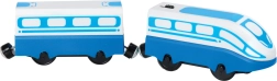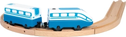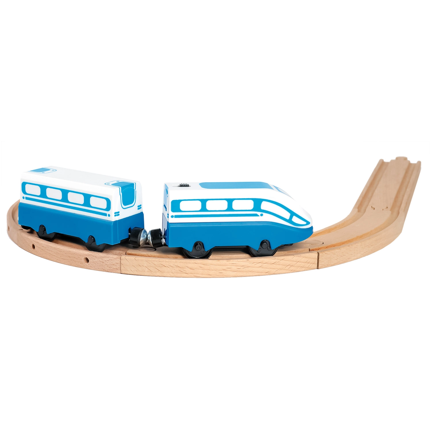 Šis didelio greičio elektrinis lokomotyvas su vagonėliu yra idealus bet kurios medinės geležinkelio trasos papildymas. Dėl kompaktiškų matmenų, paprasto valdymo ir magnetinio vagonėlio sujungimo jis suteiks vaikams valandų valandas pramogų, kartu lavindamas smulkiąją motoriką ir vaizduotę.