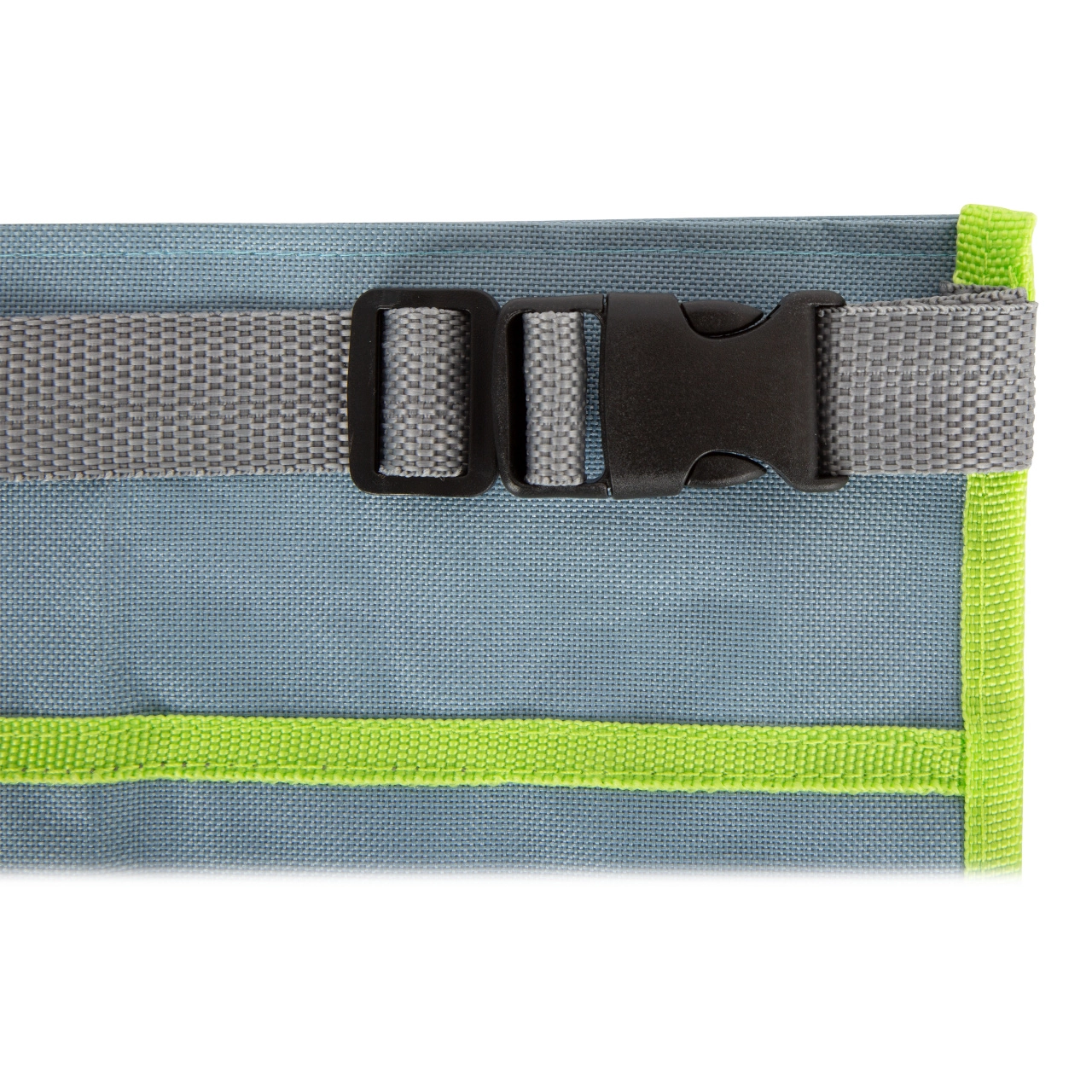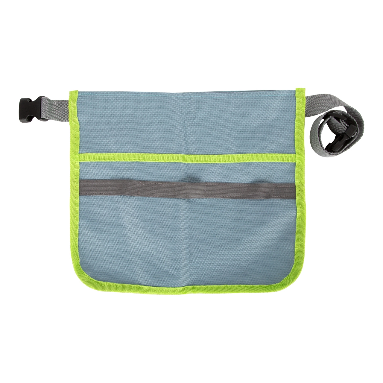 Tekstilinė juosmens tašė su praktiškomis kišenėmis saugiai laiko įrankius. Reguliuojamas diržas su spragtelima sagtimi lengvai prisitaiko prie vaiko augimo.